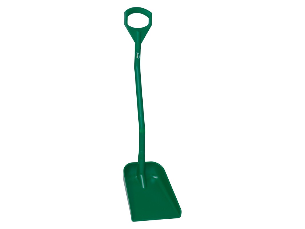The Vikan hygiene shovel has a short handle and small blade. This combination makes it light weighted and able to fit into the smallest containers. The handle of the Vikan shovel is re-inforced with an inner aluminium tube. It is stepped in two places which helps to prevent back injuries. The neck joint has been strengthened in order to withstand heavy duty use.