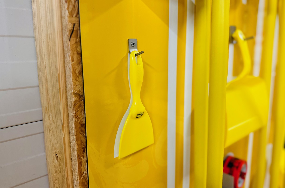 The stainless steel storage hook small can be used for hanging small tools on a shadowboard or on a cleaning board. This way of storing is very hygienic and safe and can be implemented in different kinds of environments like wet and senarately areas. The hooks are specially designed to ensure that the materials hang separated from the background. Fastening materials will not be supplied.